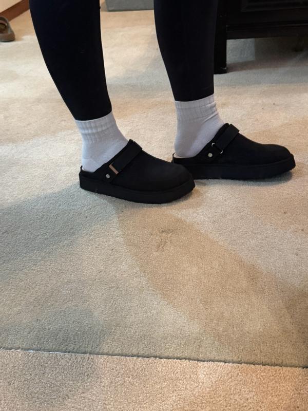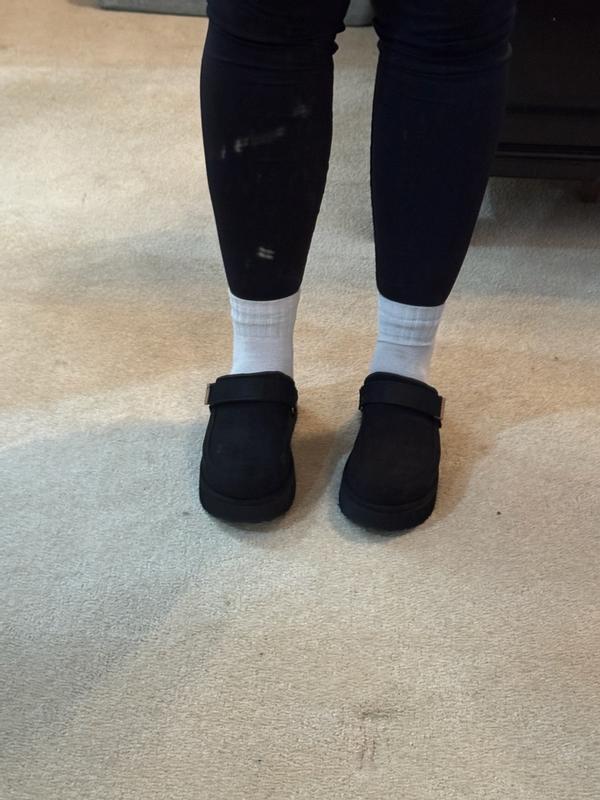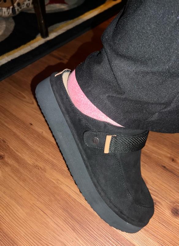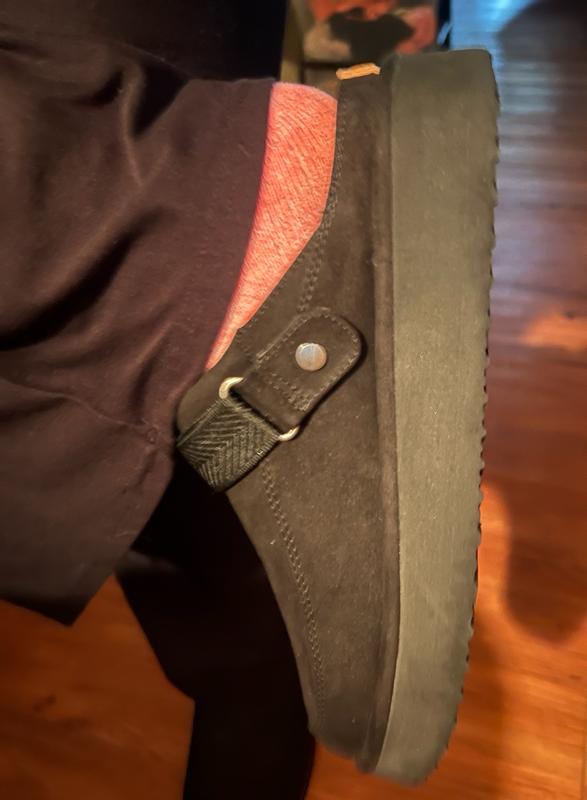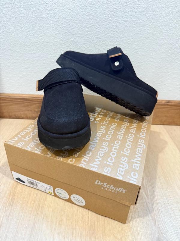 These all black slip on clogs are extremely lightweight and just a bit wider for being a regular size. While lightweight, it kind of feels like you’re wearing cardboard or styrofoam on the platform part. As far as wider goes- it’s great with thicker socks. The upper and interior sole are both a durable fabric material. The comfort level is not hard as a rock - they are ok, but it is not as plush as I expected to be based on my other Dr. Scholls shoes. For style, I really like the buckle part - it’s a different woven fabric and a tan accent at the end of the strap to break up the upper part of the shoe. I am struggling with style... As far as with leggings, you would need thicker socks to balance out the chunky appearance of the shoe. I think this slip on is worn best with a flare/wide leg pant lounge set. I received these on Influenster in exchange for my honest review.