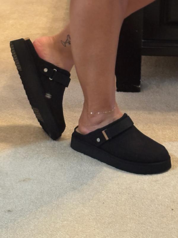 Dr. Scholls women’s Chill Time Slip on Clog are super comfortable. They run a little big so go down a size. They cute fall style to be at home or out too. Made me a little taller lol