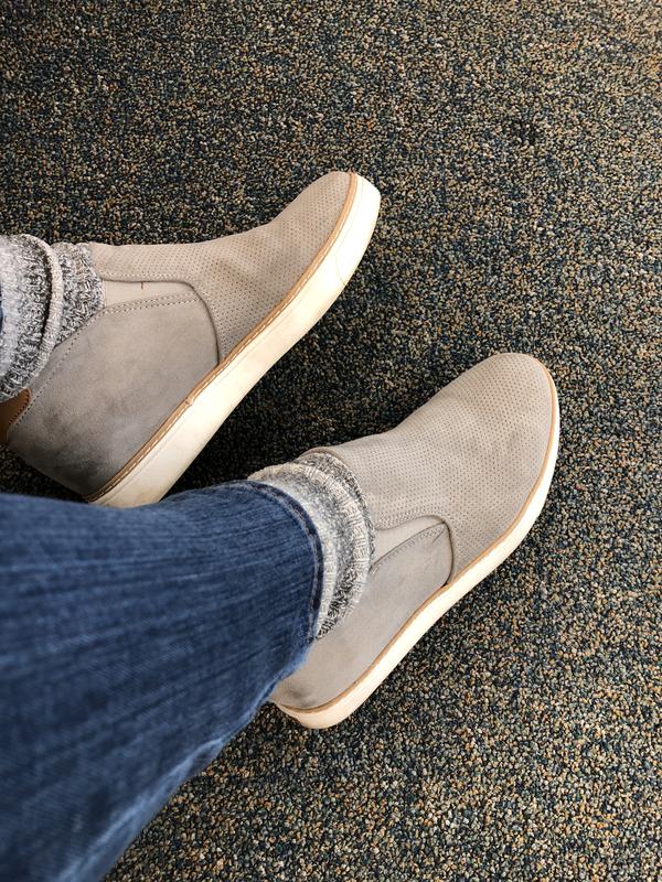I like this shoe so much this is the second time I purchased it. I haven’t actually worn out the first pair yet but in case I do, I have a backup pair. Love the color and the wedge is not too much. Very comfortable and look great. I use a suede brush to keep them looking fresh and clean and waterproofed them to last as long as possible.