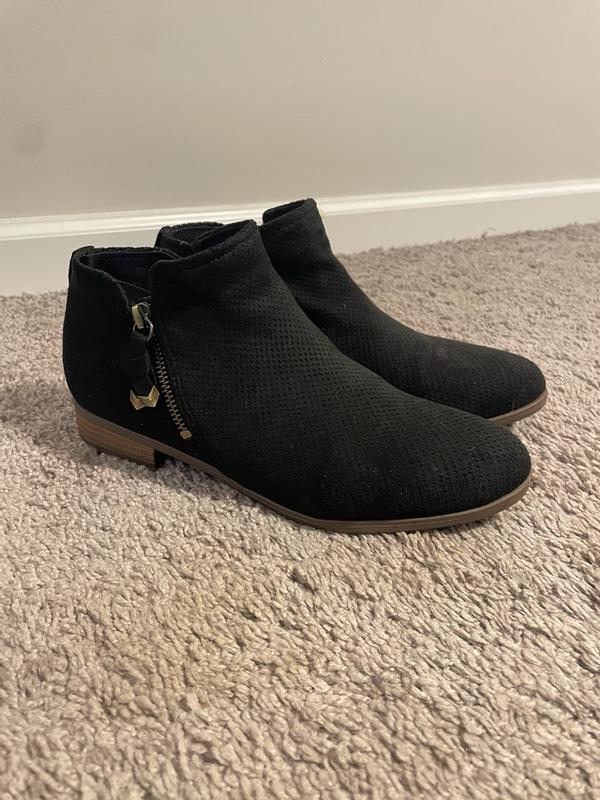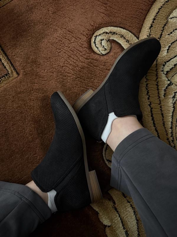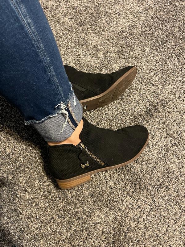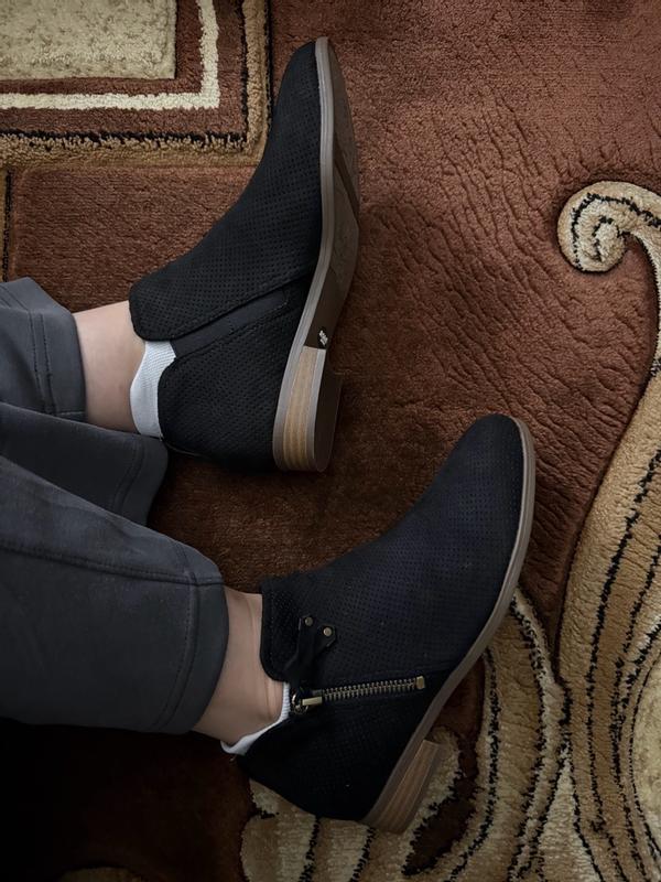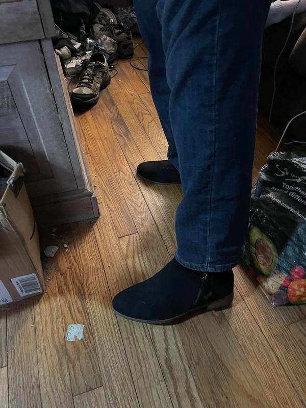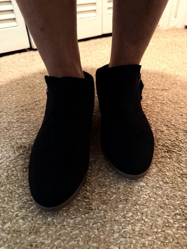 Amazing ankle booties that are comfortable and fit true to size! These shoes have good support. I wore them for a long time and my feet felt great all day. They are easy to clean off, if they get dirty. The shoes don’t slide on floors or off feet. They have a grip on them! Plus, they are the perfect height for ankle booties.