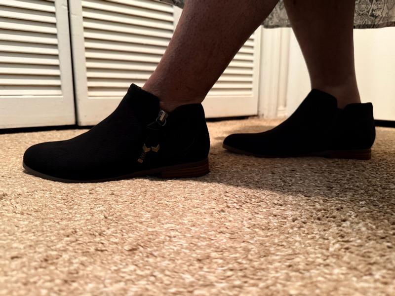 I LOVE these shoes. I’m a hair stylist and I’m on my feet all day, I need comfortable cute shoes and these fit the bill perfectly. The wide width is perfect for my feet without being so wide that I’m swimming in them. The size was spot on to my normal shoe size. I can wear these for 8+ hours on my feet without even a hint of discomfort. I would buy these again, they are adorable with tights and a dress (my fave way to wear them). The zipper detail is so nice. I get so many compliments which is super important when you’re a stylist who’s supposed to be on top of trends. Everyone is surprised to hear they are Dr. Scholls!
