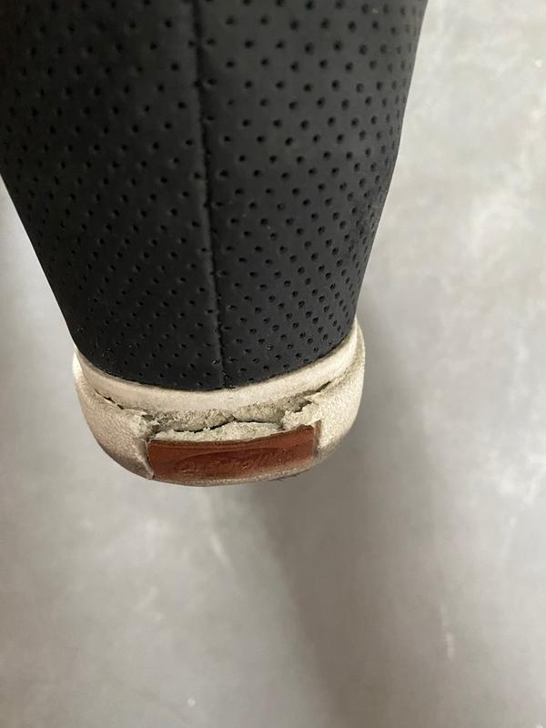 The back of this shoe extends far to high in back making it rub against my leg (above heel) and it's impossible to walk in for very long as it would cause serious blisters. I love this style but backing against heel needs to be significantly lower. This style wedge sandal with strap instead of the back formed heel is far more comfortable - please bring back that sandal or fix this one. And yes, it does run a little big so size half down, but beware your heel will regret it!