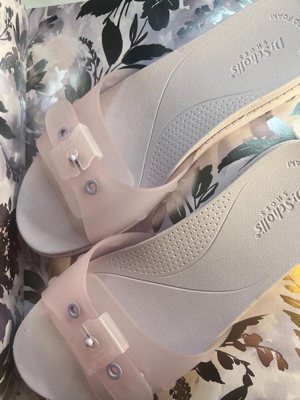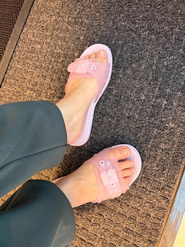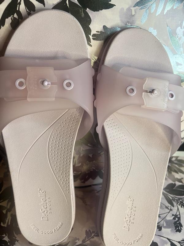 These Dr Scholl's So Original Jelly Slide Sandals are so cute and comfortable. It feels like walking on a sturdy cloud. I like that they're adjustable on the part that goes across your foot. I definitely recommend these.