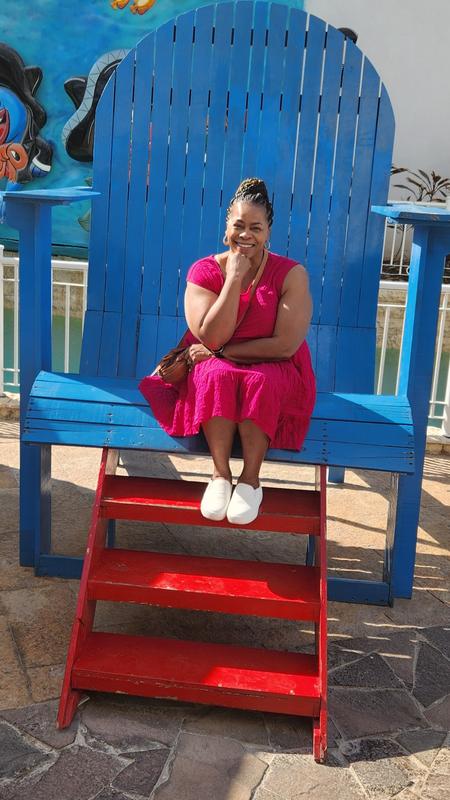 It's very comfortable. Lots of cushion for people who walk a lot or are always on their feet for hours. Ordered 1/2 size bigger for easy slip on (subjective opinion).