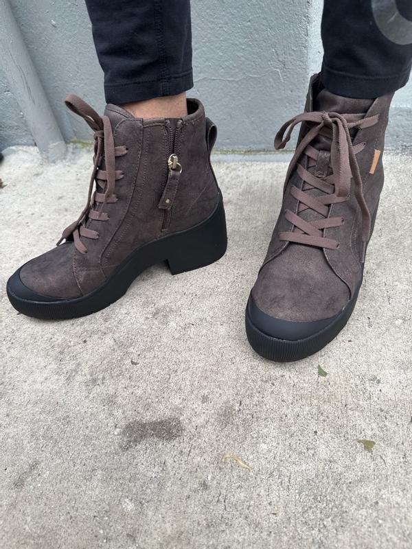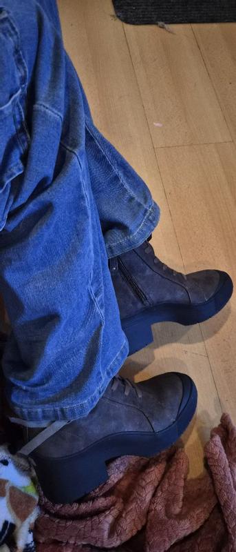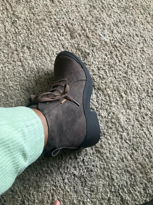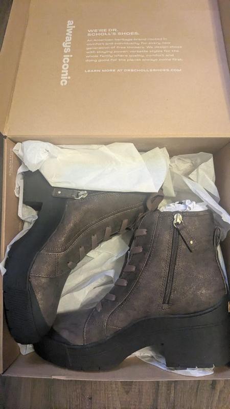 I quite like these Dr. Scholl’s Women’s Time Off Up Platform Ankle Boots. I chose the Dark Umber Feaux leather color. I was in search of a shoe/boot that was somewhat of a platform. I wanted some height, but needed comfort as I have 3 dogs (and a husband) and I am on my feet quite a lot. These felt good out of the box. I started wearing them they day they arrived. I was worried how they would feel, as a lot of boots rub my feet in unpleasant ways. So far, I am blister free! I ordered my normal size 7.5 and they fit great. I thought they were cuter in person than they looked online, which was a nice surprise. They do squeak a bit when I walk, not the bottoms, but I the material from the bend of the boot while moving. I expect that will become less once I have worn them a little more.