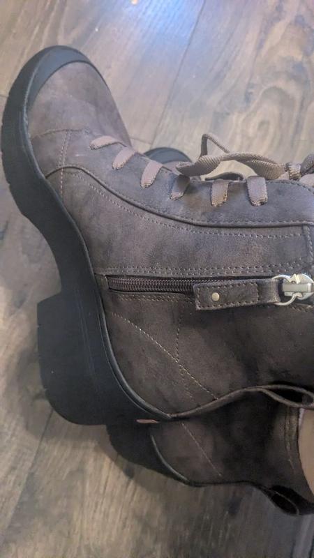 These boots are very comfortable. They fit perfectly. They are really easy to get on with the side zip once you get the laces suited to your feet . I really like the color and softness of the material.