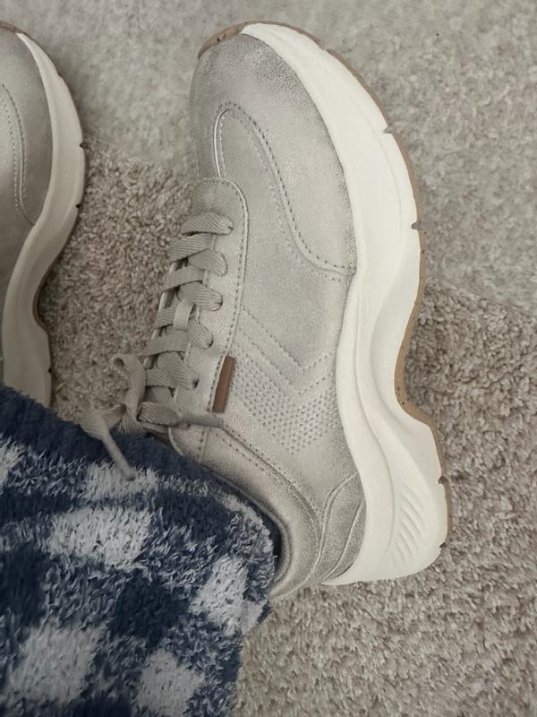 These are actually super cute and oh my are they comfy!! I was skeptical of the metallic color but they aren't super shiny which is a plus. I will totally rock these shoes with leggings and a hoodie!