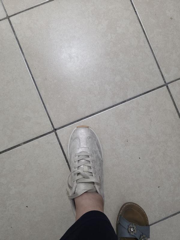 These Dr. Scholl’s shoes are very comfortable. They have a nice amount of cushion on the insole. They are very lightweight on the foot. My foot feels very supported in them. I love the metallic look and speckled bottom. Such a fun look. Wore them after a ligament injury and they feel great. They have a lot of room for the toes and my foot felt well supported and pain free. Would recommend if you are looking for a comfortable shoe that is still fashionable too.