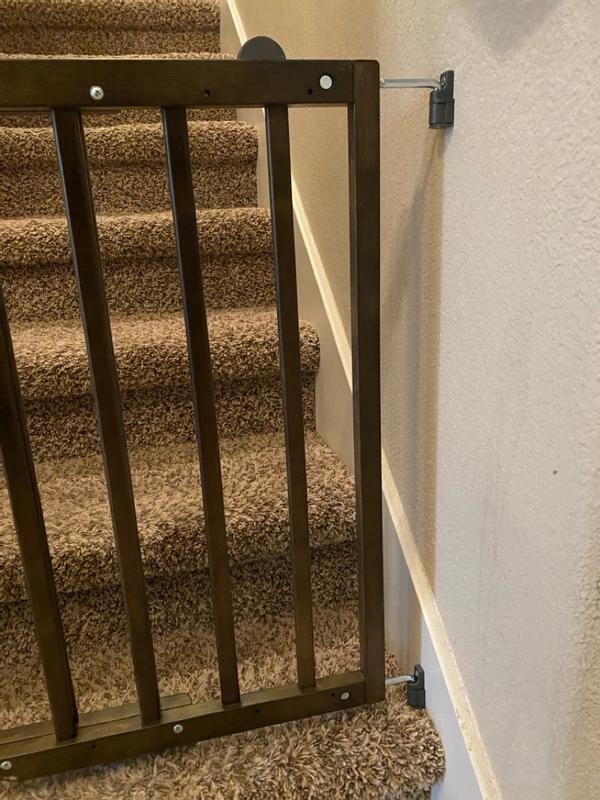 Great baby gate works well with my baby and toddler yet the wood design and color of it looks elegant . Installation was easy does need to be attached to wall it's not a snap on gate