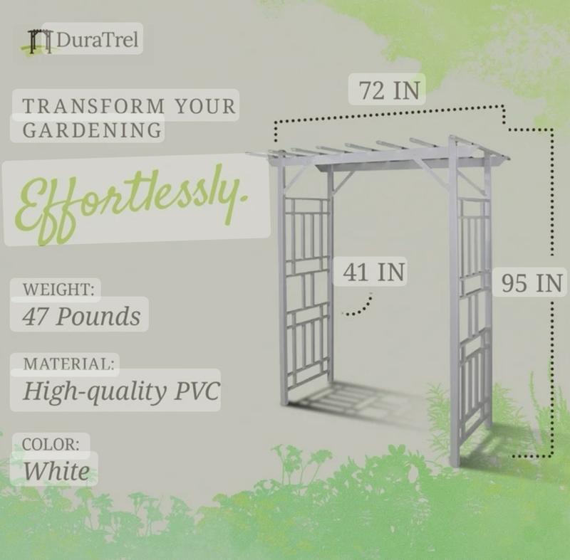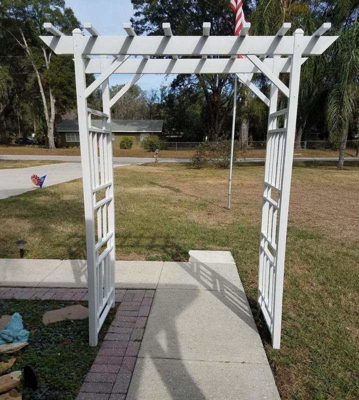 The instructions were clear and precise and made it really easy to put this Dura-Trel Wellington Arbor together. Once I screwed the pieces in place, this trellis was nice and stable. Because it is made of vinyl, it will be very easy to clean. I’m going to plant a few clematis on each side and let them climb. I’ve been wanting an arbor for years and this one is absolutely beautiful. I highly recommend Dura-Trel products. The quality of this Wellington Arbor is absolutely outstanding!