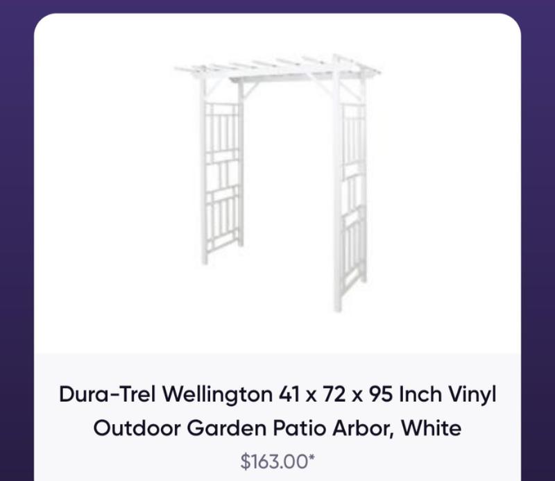 This looks absolutely beautiful in my backyard. The assembly was not complicated or difficult. The design on the trellis is so pretty and the material feels durable and like it will hold up in the weather.