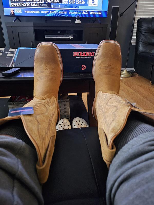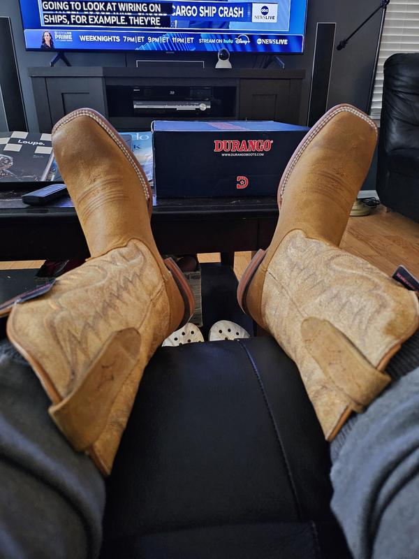 Wasn't too sure about the color but its growing on me. Perfect fit 9.5D, love everything about these boots. Very comfortable first time wearing them outside. Satisfied customer. This will not be my last pair of Durango's.