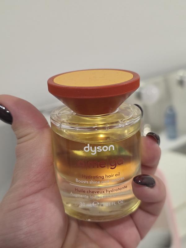 Got new Dyson hair Oil - delicate citrus smell, very light texture, leaves hair shiny and appearing fresh, will definitely reorder. My only regret bottle is made of glass, making it heavy. Please update the bottle to a lighter material, so its easy to through in cosmetic case to carry around for refreshment as needed throughout the day