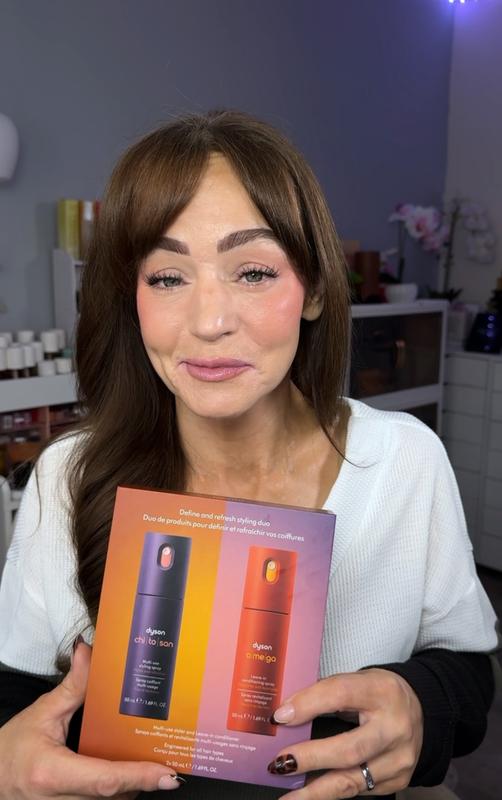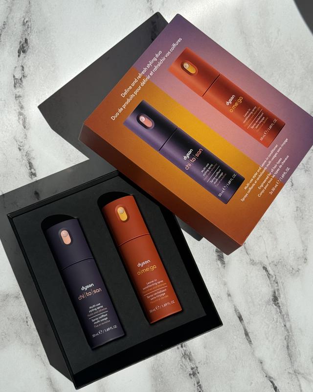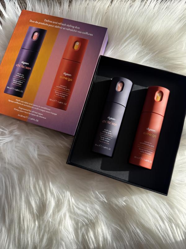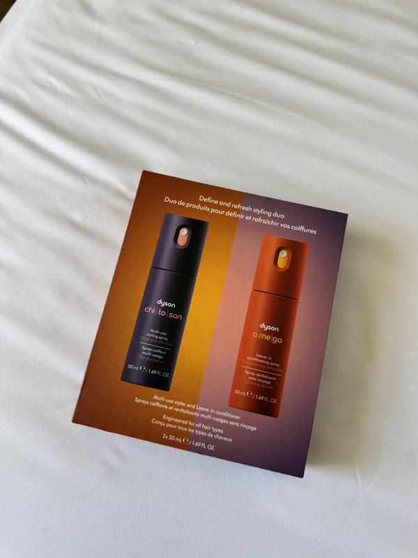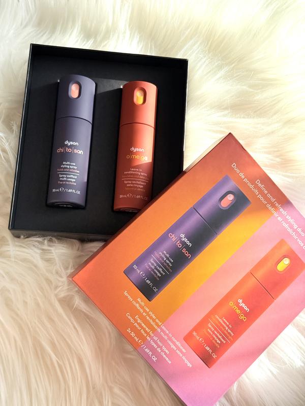 Complimentary from dysonhair - This Dyson Styling Duo is perfect for refreshing hair. The leave in conditioner helps detangle without leaving hair feeling oily. The styling spray offers a nice flexible hold perfect for soft curls. I loved these!
