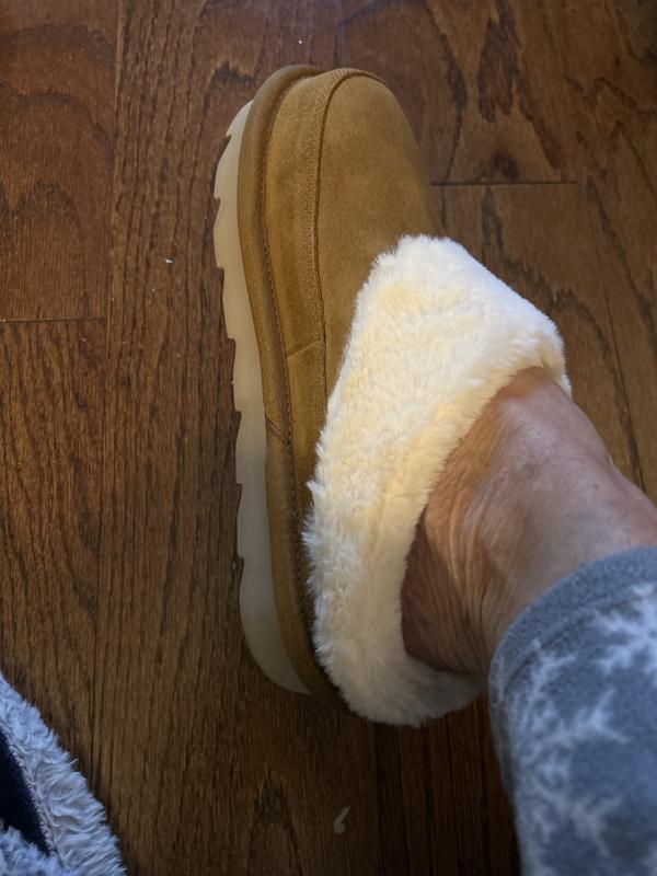 First of all when the slippers arrived they were 2 different sizes. One slipper was a size 7 and the other one was an 8. I’m size 8 so I had to call Macy’s told them what happened and they sent me the correct size. When I finally got them and tried them on they were cute and warm. But they were definitely stiff and not flexible, very uncomfortable.