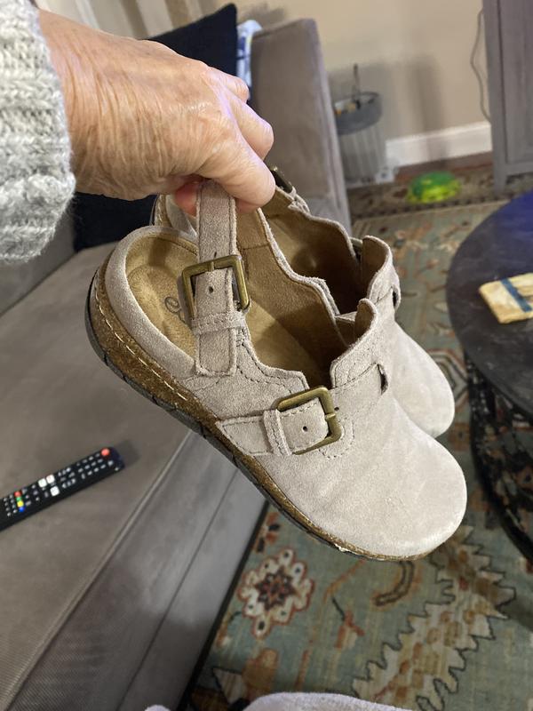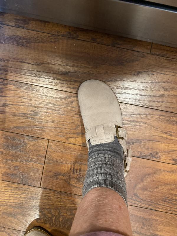 Love the support in the sole and the width. I have arthritic, wide feet. These clog/Birkenstock style shoes give me more support without feeling tight. Leather is very soft and good quality.