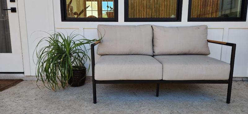Lea Indoor/Outdoor Patio Loveseat is modern and stylish. It is comfortable and easy to maintain. Now I gave it 4 stars because one of the seat panels was installed backward from the factory. I added pictures. I was able to flips it and get the loveseat built. Aside from that it was easy to assemble, perfect size, well built and lightweight and easy to move.