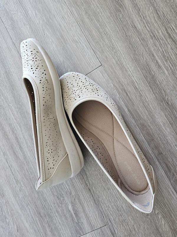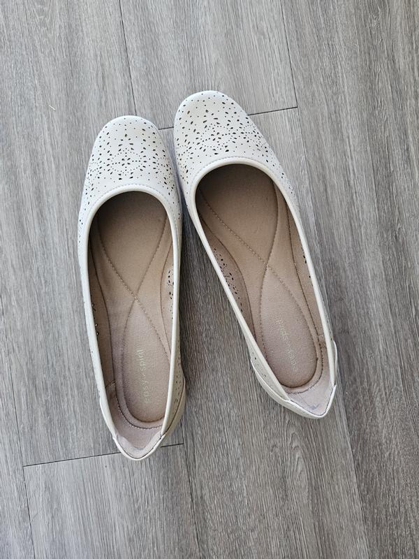 This was the second pair of Easy Spirit Alessia slip-ons I purchased for my daughter. Her work place encourages office employees to wear lower, mostly slip proof shoes. These flats are a classic style that can be worn with a variety of outfits both office and casual. She found them very comfortable right out of the box. This particular style has little perforations that add a little style. Although they are called ballet flats, they are not super flat. The sole is rubberized and the heel is about an inch or so. The insole is cushioned and very soft. The shoe is flexible and comfortable. Personally, I have always been a fan of Easy Spirit shoes because I have always found them comfortable right out of the box. I have converted my daughter: She is looking at additional Easy Spirit styles.