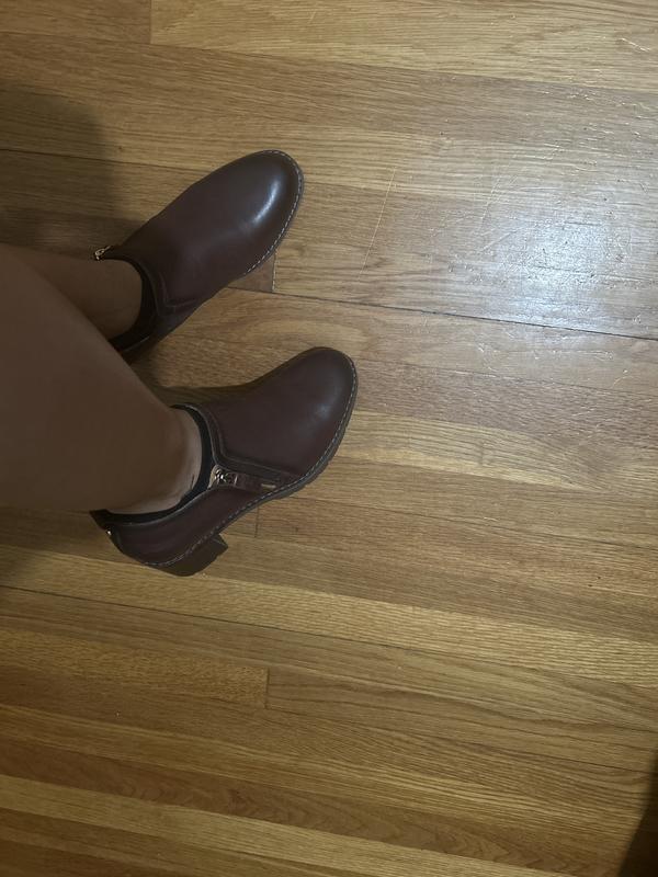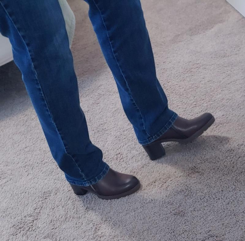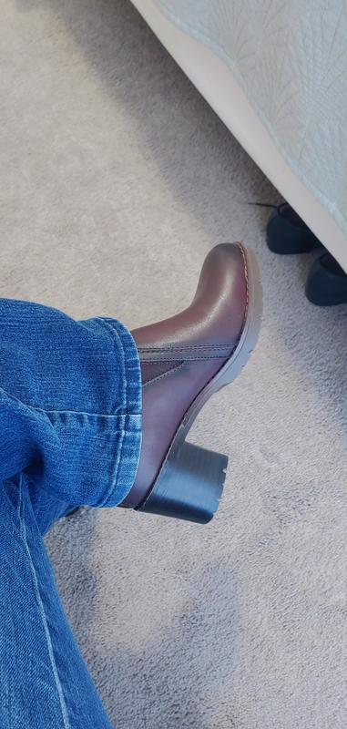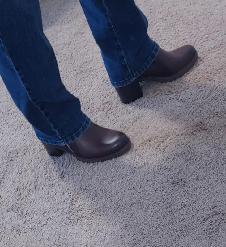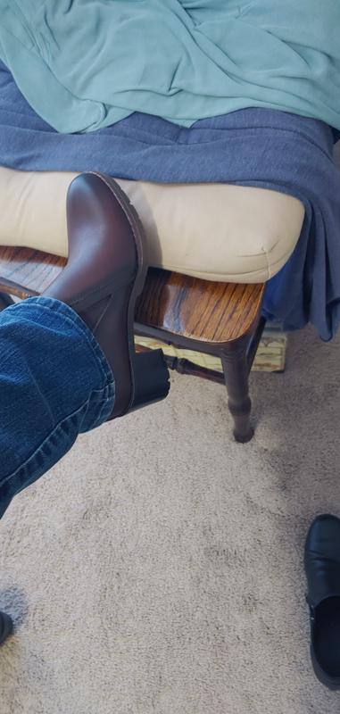 I have actually bought this style for years. I love it is a bootie and there is no pull tab on the back of the shoe to get in the way of pants laying nicely around the ankle. They are well cushioned with comfortable support. The heel is a nice height to wear with flare or straight leg pants. Highly recommend.