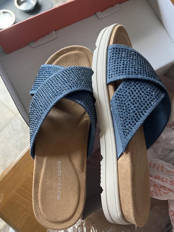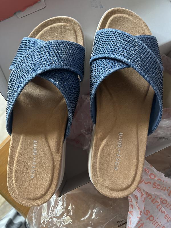 Pretty and light I opened the box and was impressed by the look and quality of these comfy slides. However I have high arches and I found the toe straps were too tight and not enough arch support for me.