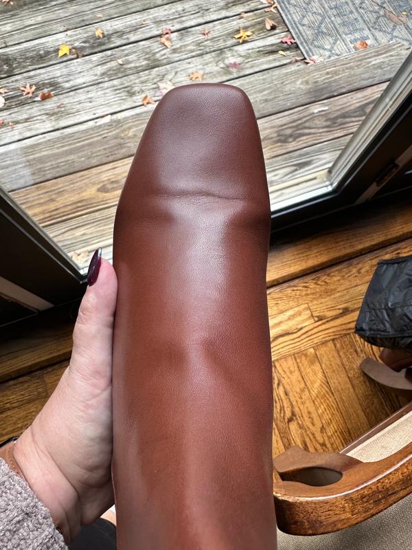 So disappointed - they fit perfectly and looked beautiful, but the left boot had this huge crease across the top. I'm not sure if it's from how much stuff they had packed inside the boot but there was no way I could keep them. I didn't exchange them because honestly, I worried the crease would happen when I wore them.