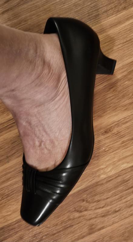 Very pretty kitten heels; the heel size and shape was perfect and was just what I needed. However, although the size I ordered was my usual size, the shape of the toe was very narrow and uncomfortable. Unfortunately, I did have to return them.
