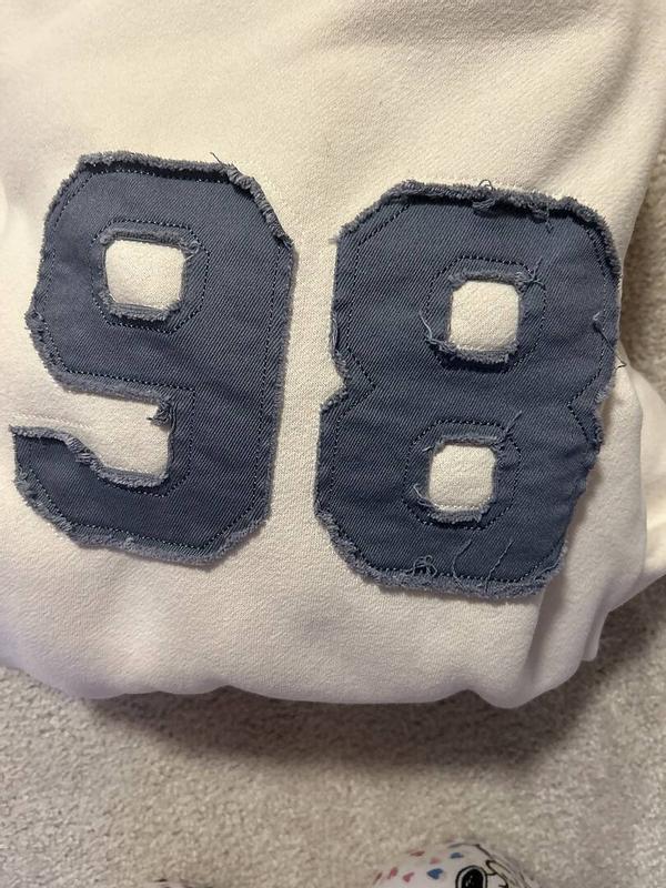 I LOVE this sweatshirt. I got it on sale and it was the best perchase. Such good quality; its super comfy and goes with everything. Only 4 stars because the numbers are fraying at the ends a little (but again, got it on sale so not complaining).