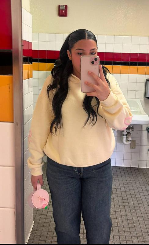 so cute and comfy, my only thing is that i would size up from your normal sweatshirt size!! i bought a size small which is my usual size in hoodies and after washing it felt that it was a bit small. but other than that it was perfect!