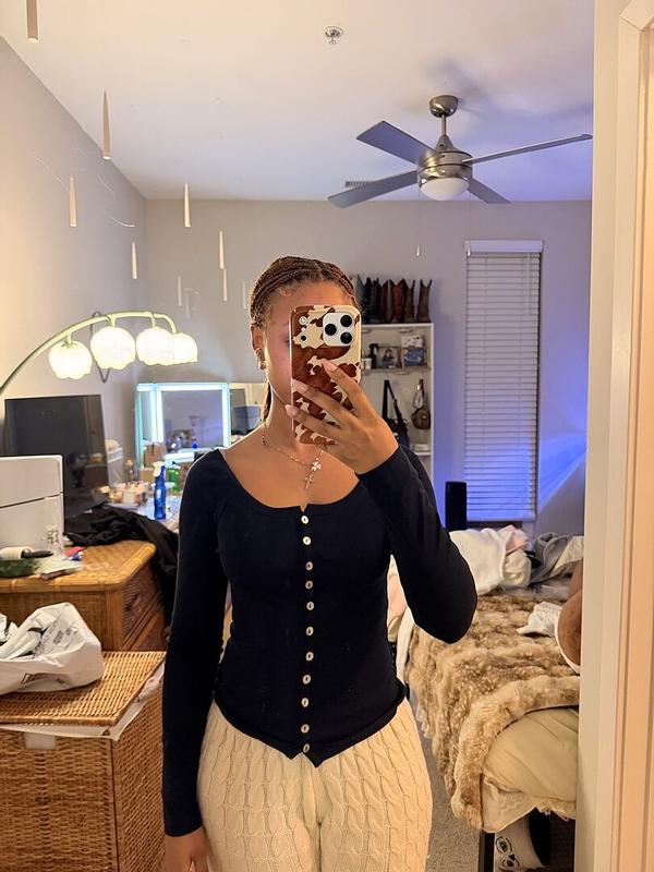 Cute but not sweater material it’s just like as thin as a long sleeve undershirt. And the neckline is really weird to move with. I think I might return it but it’s very cute