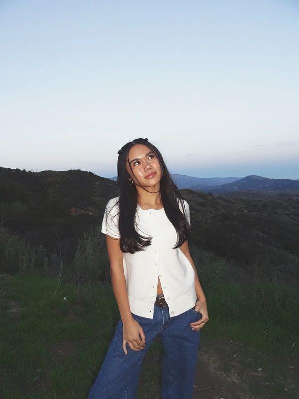 Obsessed with this top. The material is amazing and the perfect thickness. It’s also stretchy too and doesn’t make me itch. The size fits true and the sleeves don’t dig in my underarms at all. The length is perfect too. The quality is nice as it didn’t make me itch and it didn’t feel like a cheap sweater. Sweater season is my favorite but in California it’s hard to wear sweaters all day since we have weather that fluctuates, so a short sleeve sweater is good!