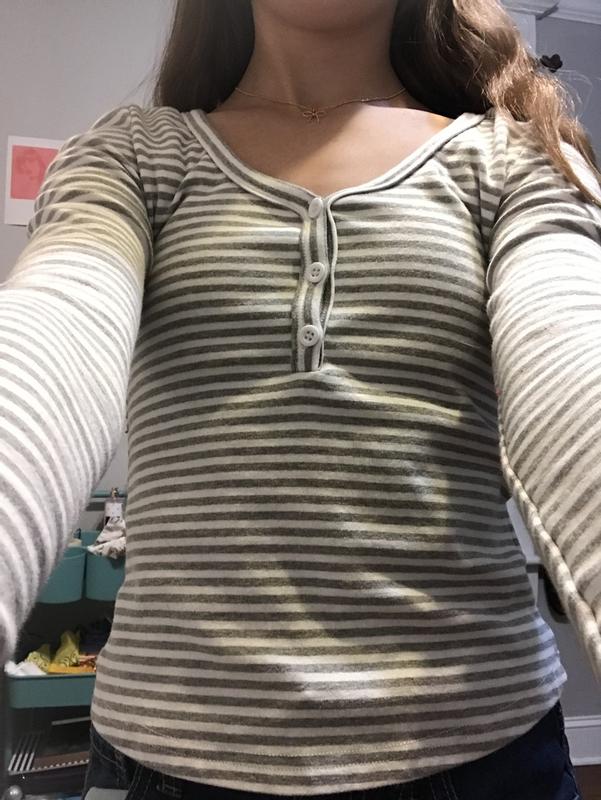 Cute top for fall time! You can make so many outfits with this top plus the material is perfect for chilly weather!