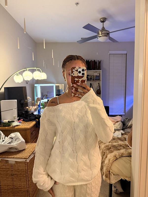 EdiktedWomen's Nellie Off Shoulder Cable Knit Sweater