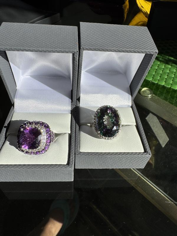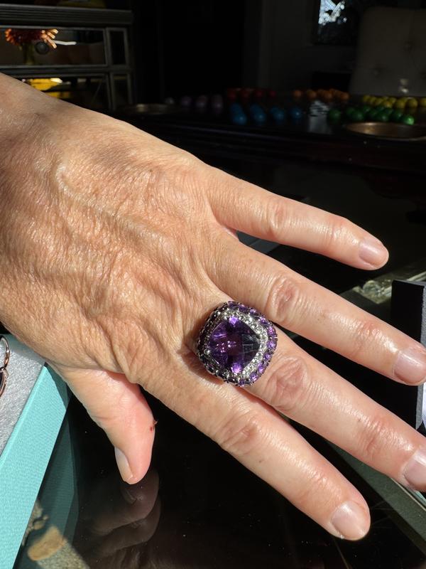 My husband bought this ring and the matching necklace for me as a surprise and I love them! The amethyst is intense and sparkling. The white topaz is clear and adds to the overall design. Very happy! Effy makes beautiful gemstone jewelry!