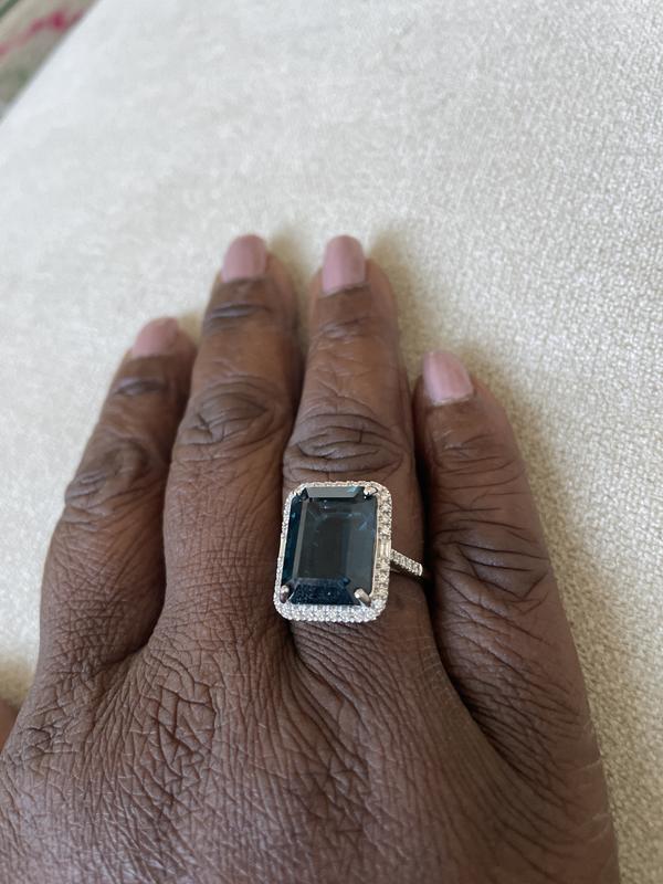 I absolutely love my London blue ring in 14kt gold. it's bigger than I thought so beautiful. I love the small diamonds around it. So stunning.