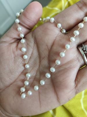 Very elegant. The pearls are very close. So it’s a chain necklace. It’s dainty and pearls are quality. I wanted a necklace with more spacing between each pearl. This is so nice and was 75% off so I’m keeping it.