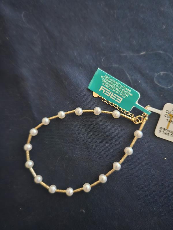 EFFY CollectionEFFY® Cultured Freshwater Pearl (4mm) Textured Link Bracelet in 14k Gold