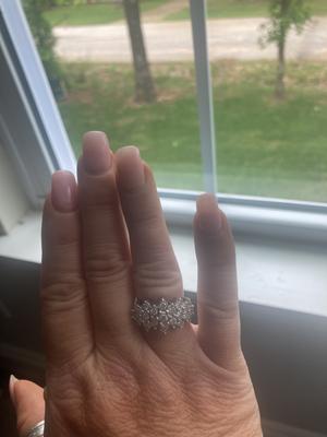 I received my ring today and it’s just gorgeous. I got a size 6 and it fit perfectly on my ring finger. My knuckle is a bit bigger but a six was perfect. I recommend this purchase to others!