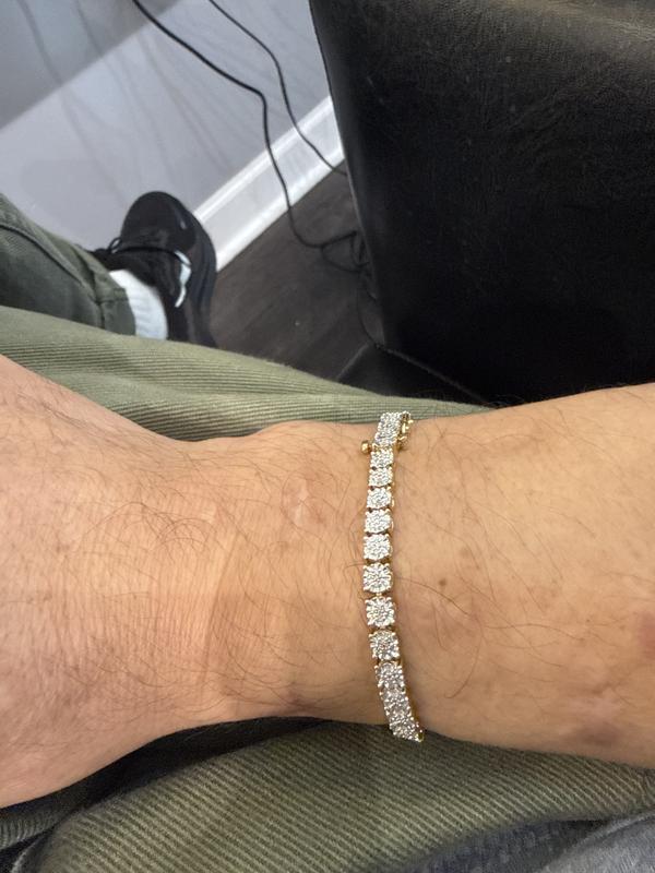 I purchased this hoping that it would match a tru miracle diamond necklace that I had purchased through Macy’s. This had a much cheaper look to it. The color of the gold was more brassy and the diamonds were in a shiny setting that made them practically disappear. I’ll stick with tru miracle in the future.