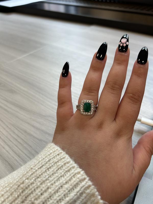 This my birthday gift and I can’t stop looking at this gorgeous ring! It is my first Emerald and I love it!