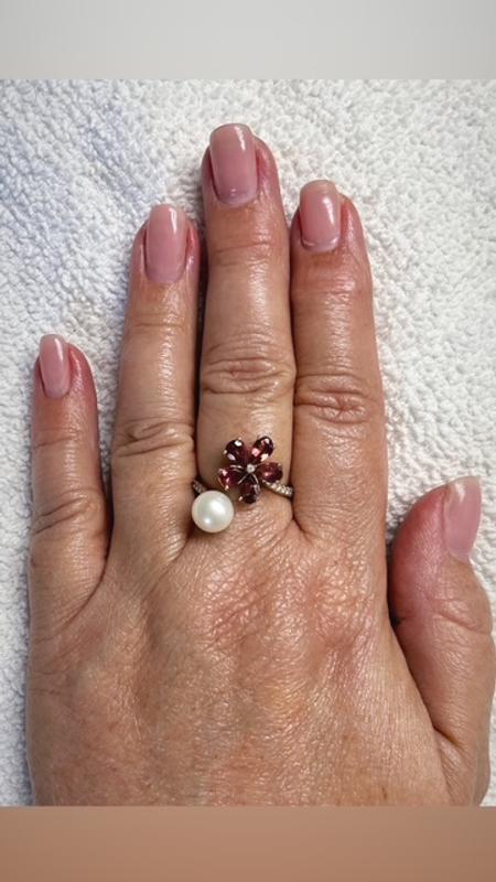 EFFY® Freshwater Pearl (8mm), Pink Tourmaline (5-1/2 ct. t.w.) & Diamond (1/8 ct. t.w.) Flower Bypass Ring in 14k Rose Gold
