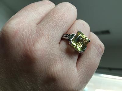 The lemon quartz is large enough to notice, the shade of yellow is very deep and brilliant. The green tsavorite are such lovely shade of green. Very pleased with this ring.