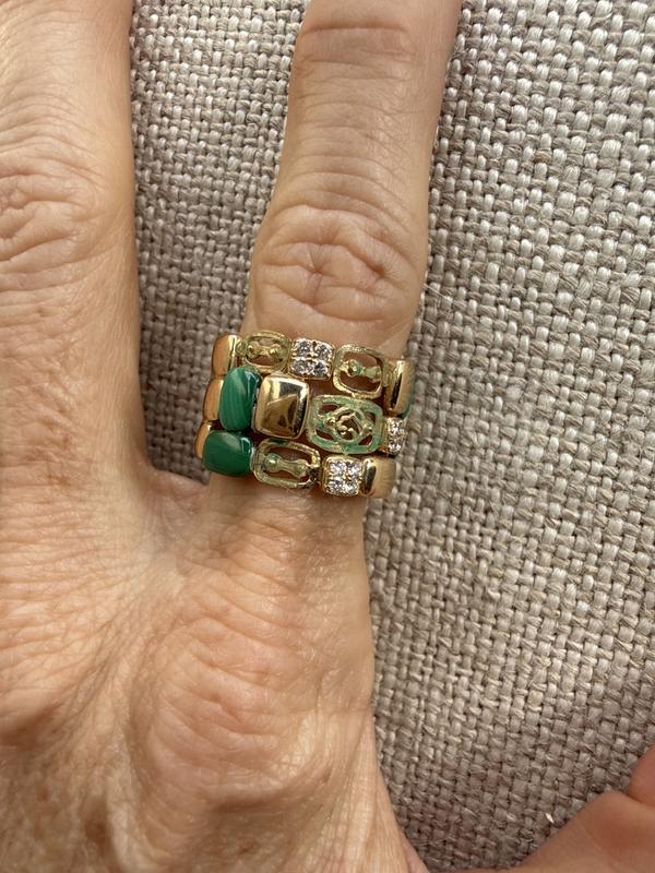 After the first wear, one Malachite stones fell out, I returned it to Macy’s and got a new ring. After only a few additional wears of the new ring, four of the Malachite stones have fallen off. Will attempt to get some sort of alternate replacement directly from Effy. Otherwise, only recourse is to try to sell it for the weight of the gold?
