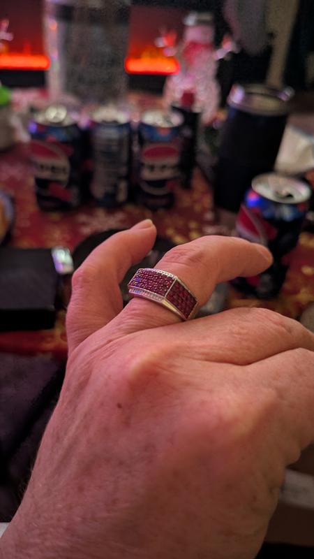 I was so excited to get it. And so much prettier in person. I got it pretty quick a day earlier than it was supposed to get here. The rubies are beautiful. Catches the light. Beautiful red. I would suggest this ring to anyone who wants a ruby ring.