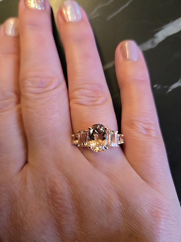 This ring is absolutely gorgeous. The stones are clear and bright. Quite an eye catcher! I was at a jewelry store today to pick up a repair on another item, and the jeweler noticed the ring and commented on how beautiful the stones were. He said "great purchase!"