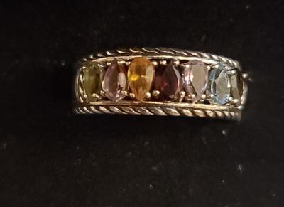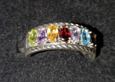This ring does not look like the advertisement. Stones are very washed out. Runs big. I will be returning it!