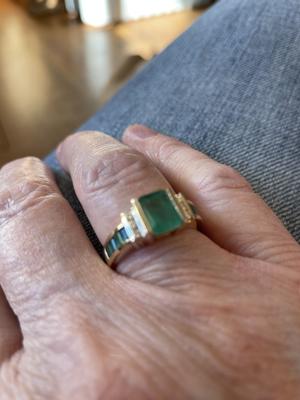 This is one of the most beautiful rings I have the color of the Emeralds are perfect and the color is exquisite. I keep looking at others but none of them compare to this one and mine is a few years old and still in excellent condition. If you like Emerald green rings this is the one.