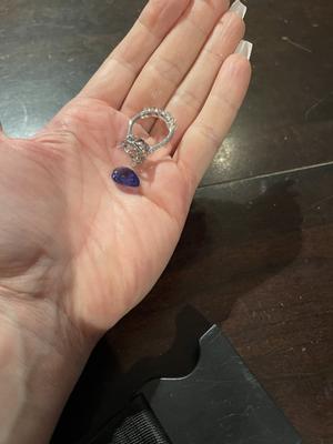 Love , love my ring . Beautiful mid deep blue with hints of purple . People stop buying gems online. Go in person . I have purchased several rings in person and not one rock has come off the setting. Value for this natural tanzanite is great.