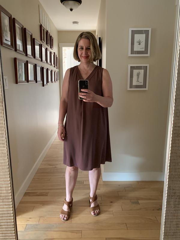 Lovely fabric and cut, drapes beautifully, When I ordered the dress, the only color left in my size, M, was fig, a color that seemed not to be a customer favorite. I was pleasantly surprised by how rich the color is and how simply gorgeous the dress is.