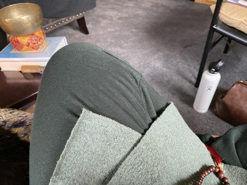 Longer rise, nice drape, and a wonderful snuggly fabric make this pant super-comfortable. I intend to use it mainly around the house, but it keeps itself neat enough that it could easily go into town or onto an airplane.