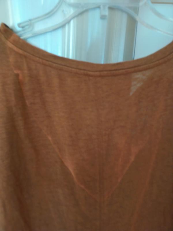 Ive been buying these tops for past two seasons. I live the style, the exceptional colors and the fabric is nice. Short sleeves but enough to mask my saggy old lady armpits. The product would get 5 stars if the dye was more stable. My favorite lost color in the areas where seams in one side of the shirt pressed against the other. Very odd, as it had been washed several times.